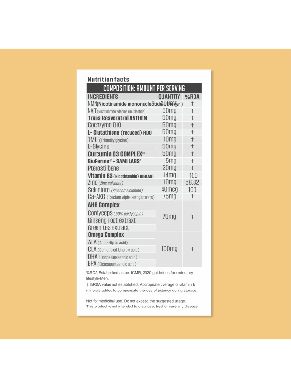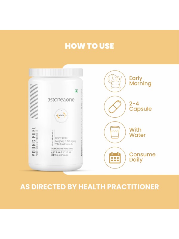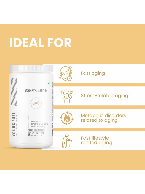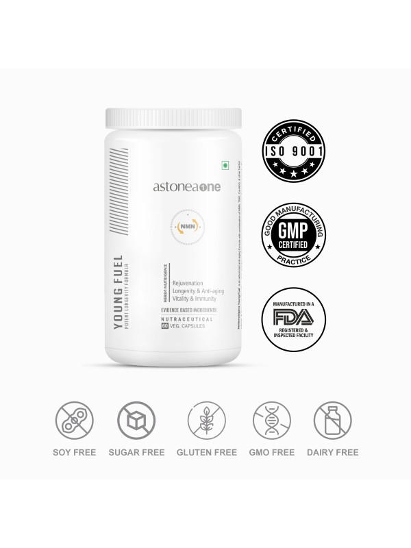 Young Fuel is an advanced anti-aging formula with a synergistic combination of NMN, TMG, Ca-AKG & herbal extracts & antioxidants like coQ10, and glutathione which are known to reduce oxidative stress, proven to target the hallmarks of aging & promote longevity. Young Fuel also supports skin rejuvenation, optimal metabolic, brain function & vitality.