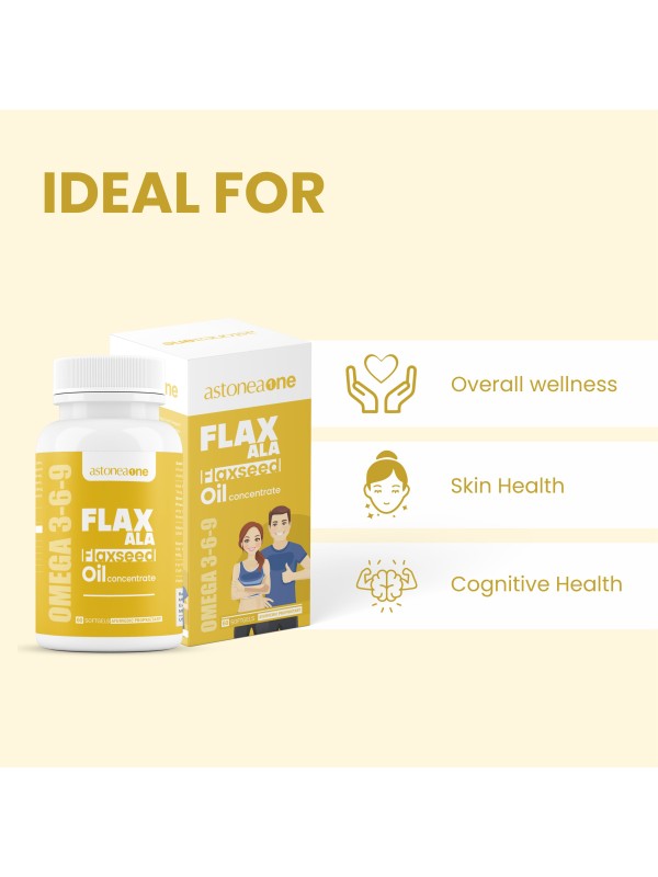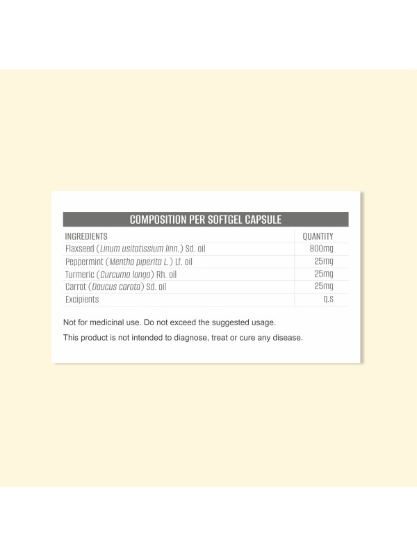 FLAX ALA contains flaxseed oil, rich in Omega-3 and Omega-6 fatty acids, essential for overall health. It is packed with alpha-linolenic acid (ALA) and helps support heart, brain, and eye health. Enhanced with the nourishing benefits of carrot oil, turmeric, and peppermint oil, FLAX ALA offers powerful antioxidant protection while promoting healthy skin, reducing inflammation, and boosting vitality