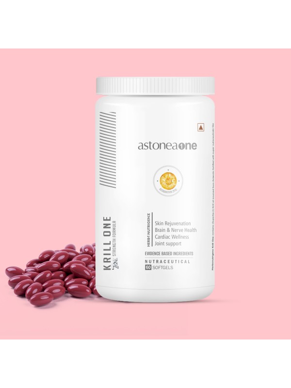 Krill One contains krill oil sustainably sourced from the Antarctic region, enriched with astaxanthin & fortified with antioxidants & vitamins D, E & K2 to manage your cardiac function, skin, brain health & nerve function. Krill oil has a high concentration (39.29% to 80.69%) of phospholipids (PLs), i.e., EPA, and considerable amounts of bioactive components such as astaxanthin, choline, sterols, tocopherols, vitamin A, flavonoids, and minerals beneficial for brain function, heart health, healthy skin, and boosted immunity.